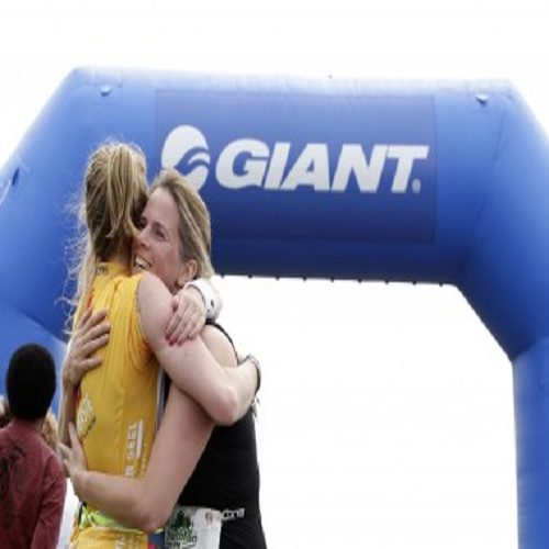 Zodra ik uit het water kom, rommelt mijn buik. Een pavlov-reactie die ik heb overgehouden aan de kinderfeestjes in het zwembad die standaard afgesloten werden met friet en een frikadel. Gelukkig ligt er bij mijn fiets druivensuiker, een Snelle Jelle en een heerlijk gelletje op me te wachten. Snel mijn schoenen aan, fietshelm op en gaan. Ik kijk nog even om me heen en ben verbaasd over het aantal fietsen dat er nog van onze groep staat. Enthousiast stap ik op mijn fiets. Maar met elke fietser die mij op het bochtige parcours inhaalt, zakt mijn enthousiasme over mijn zwemprestatie steeds verder weg. En enige jaloezie kan ik niet onderdrukken. Jaloers op iedereen die me met opzetsturen en klikpedalen her en der inhalen. En op het ontbreken van de angst om uit de bocht te vliegen. Ik denk alleen maar aan Pinot die door een beginnersfout in een bocht onderuit ging tijdens de Tour de France. In mijn hoofd spreek ik mezelf vermanend toe. “Als je linksaf gaat, dan linkerknie omhoog. Als je linksaf gaat, dan linkerknie omhoog. Als je linksaf gaat, dan linkerknie omhoog.” Na 22 km laat ik mijn fiets achter in wisselzone 2 en ga ik verder met hardlopen.